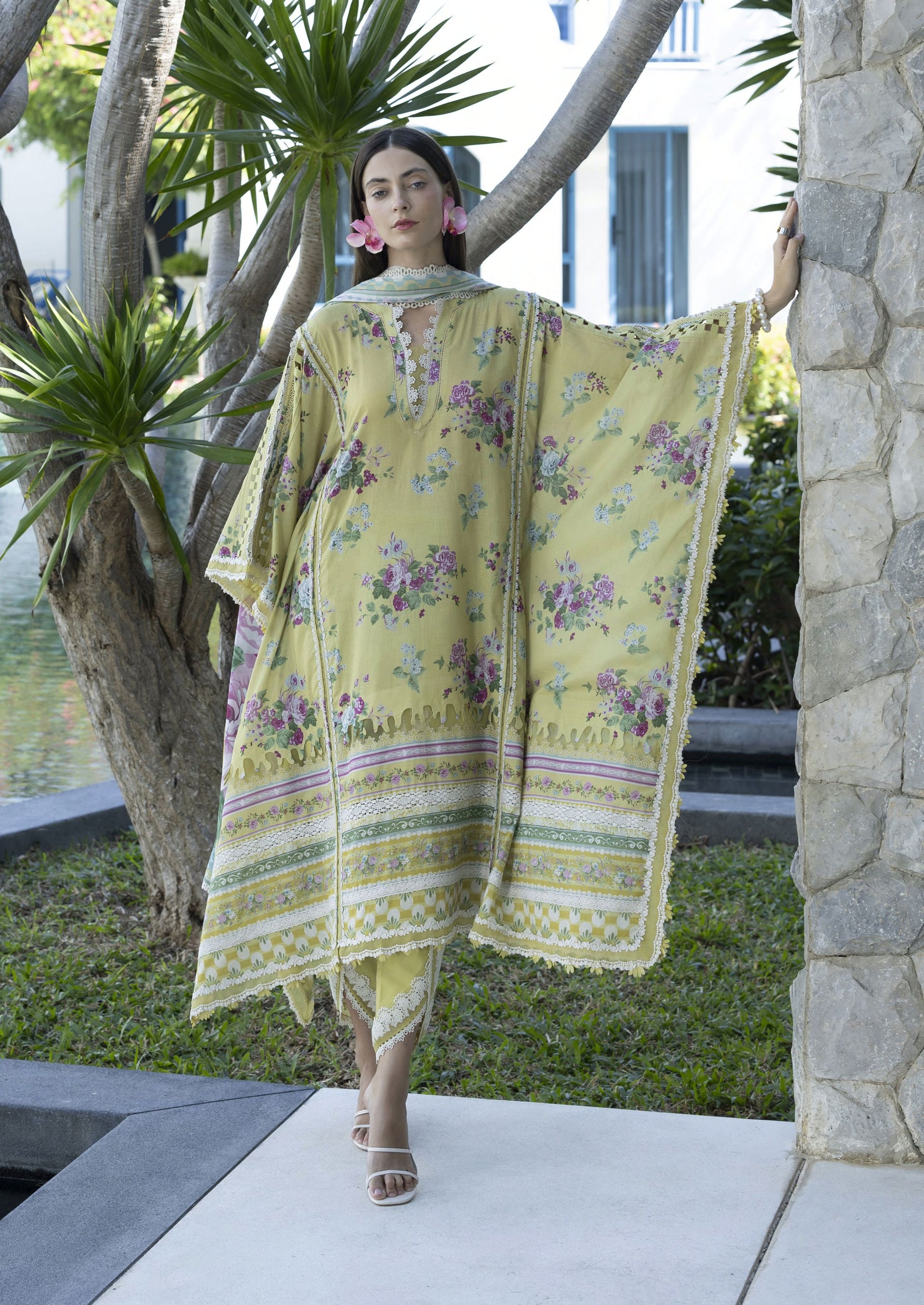 Refreshing botanical patterns and layered borders rendered in calming avocado hues for airy comfort. Crafted from premium quality fabric, this outfit is tailored for comfort, breathability, and timeless style. Perfect for daytime wear, casual gatherings, and refined seasonal dressing.